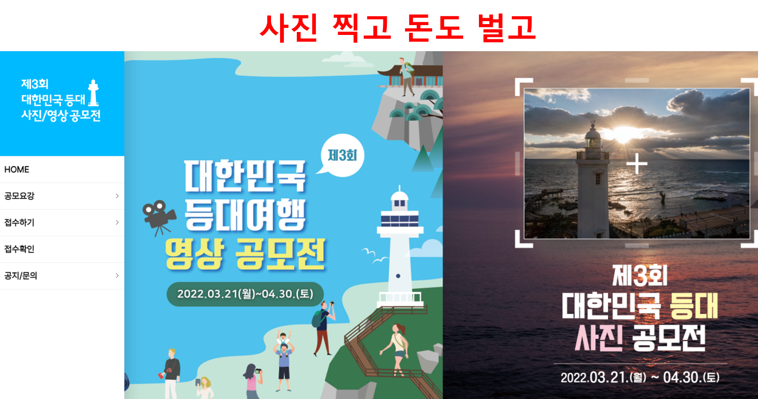 - 공모명 : 제3회 대한민국 등대여행 영상 공모전